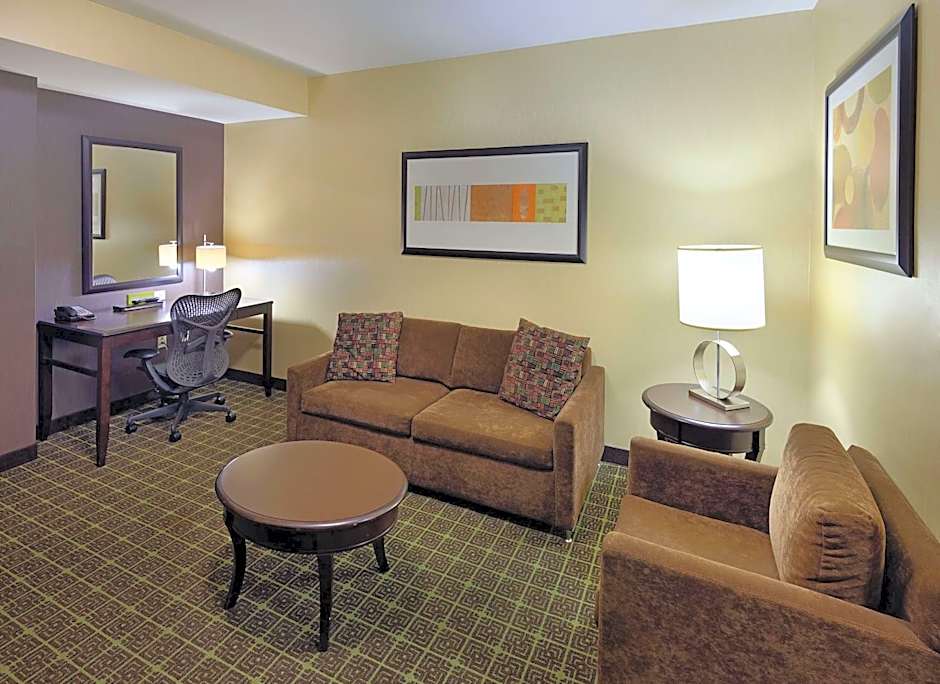 Suite features a 32-inch flat-screen TV and a seating area.